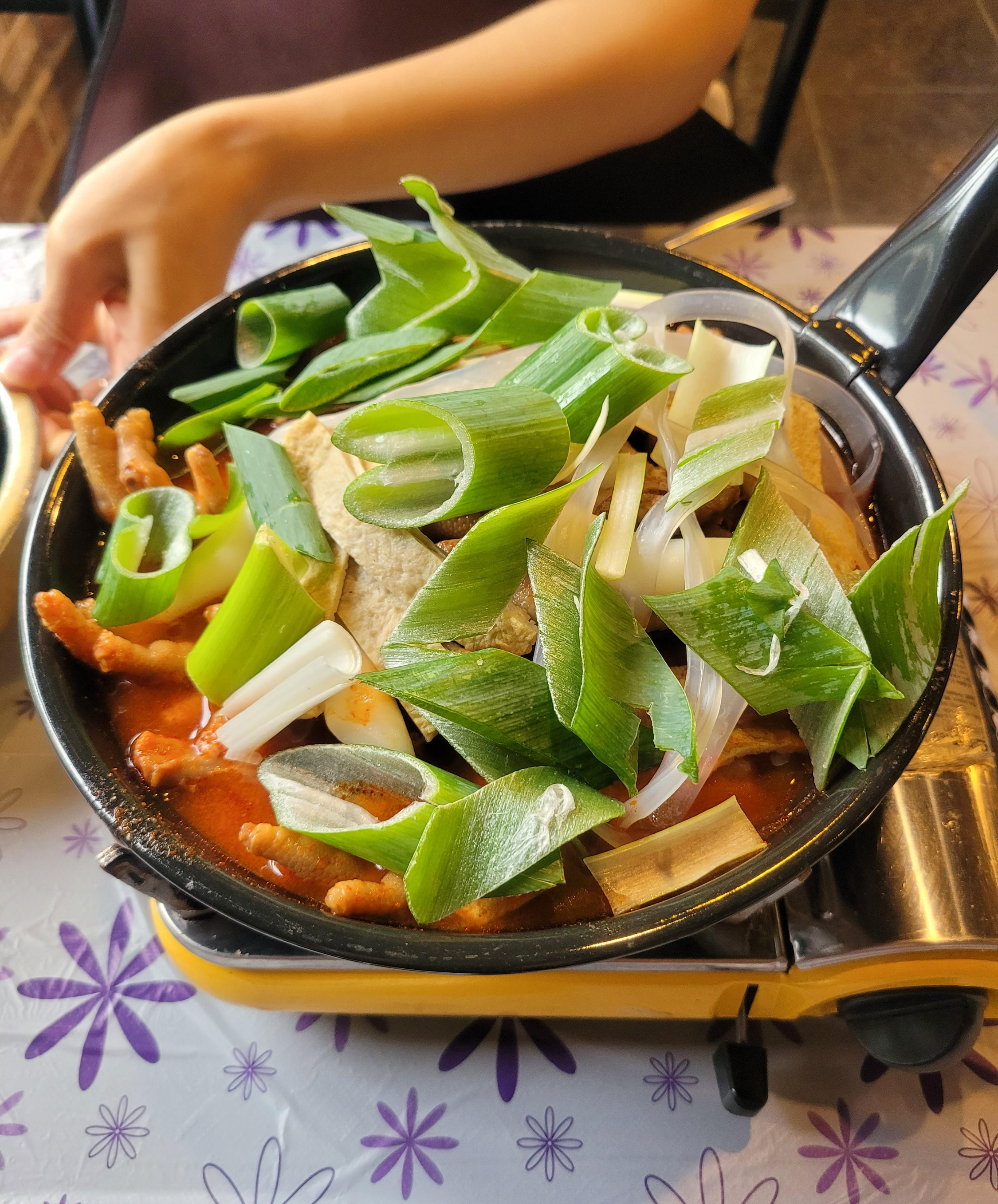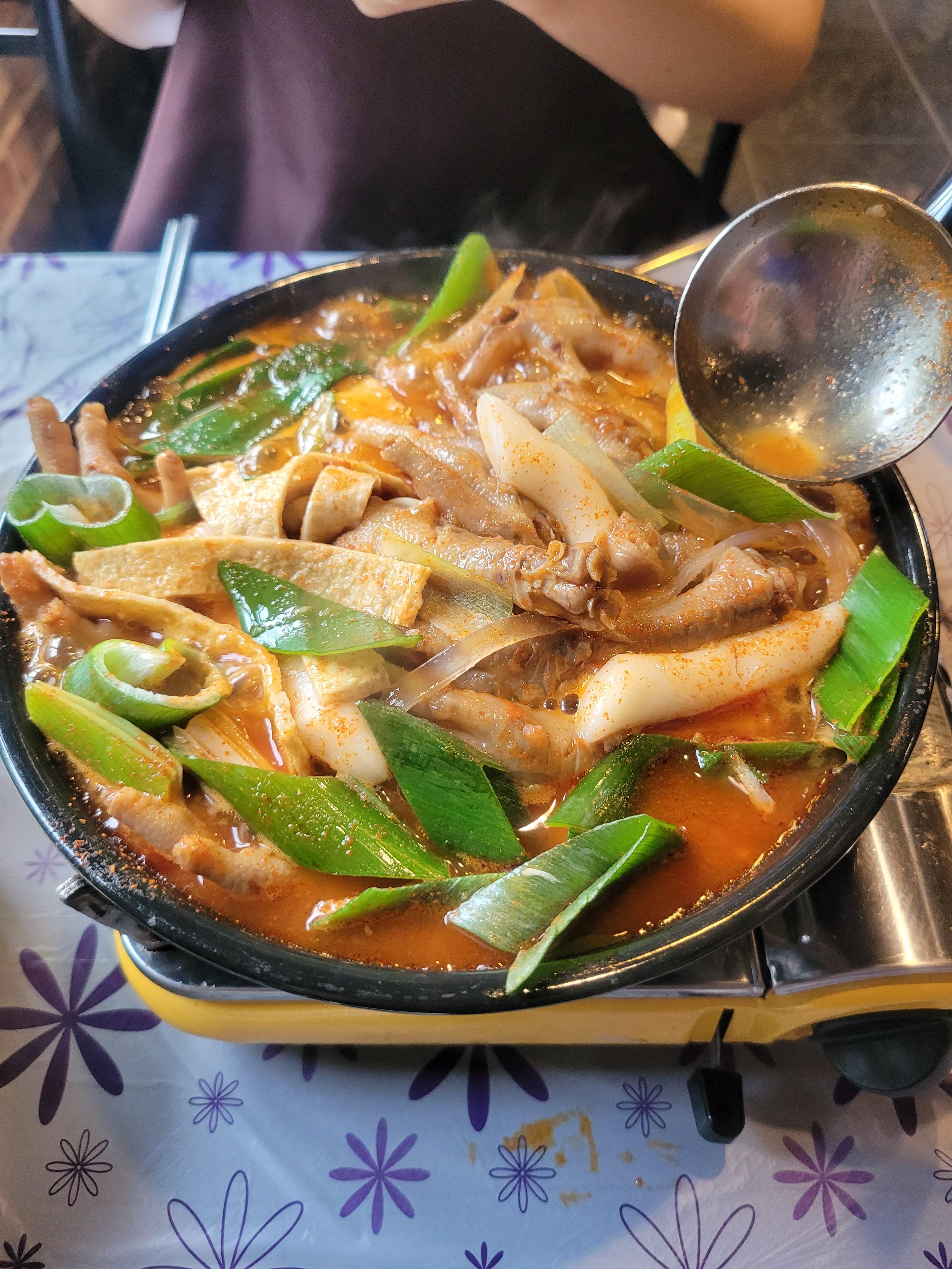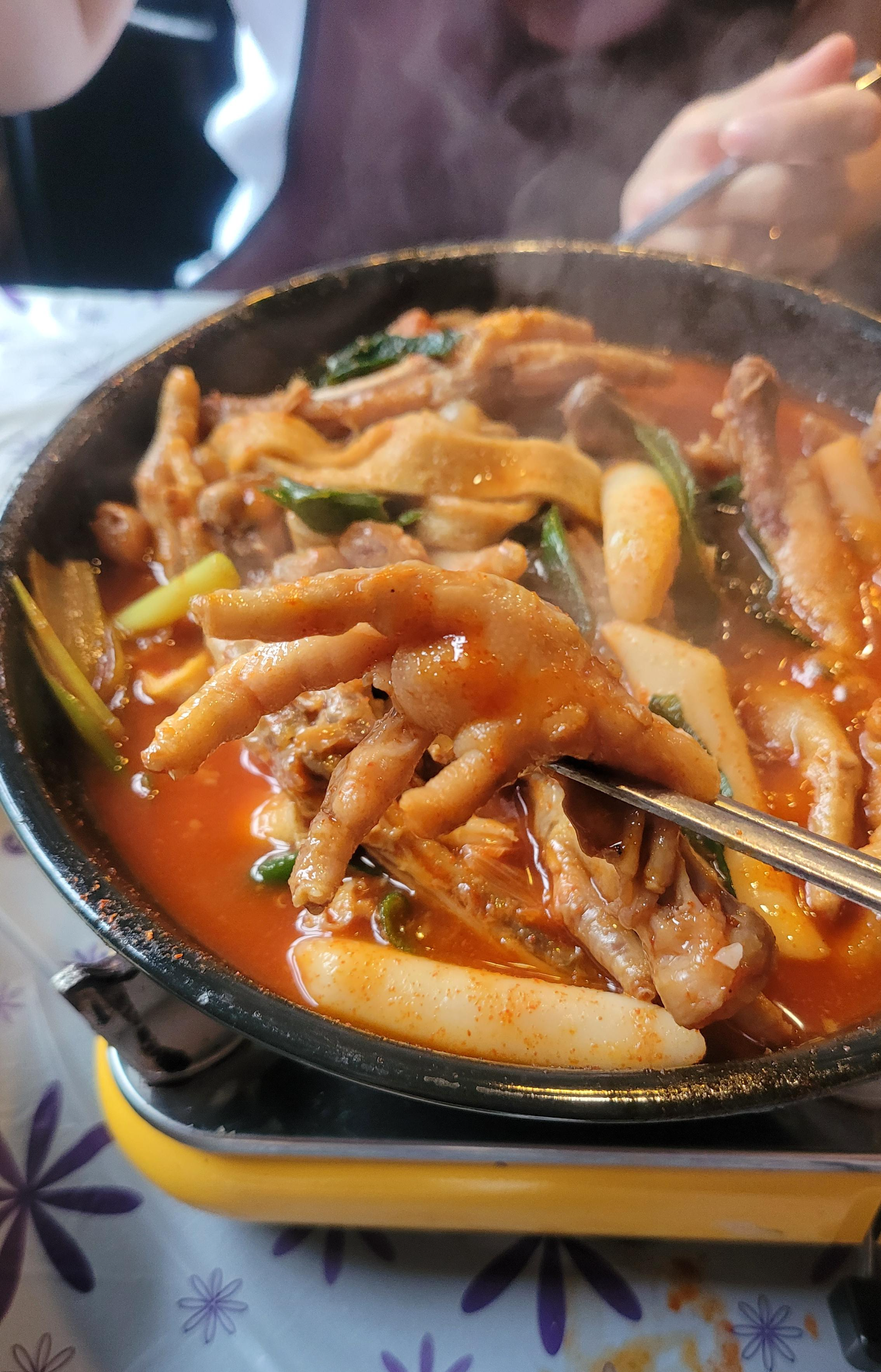 파릇파릇 대파 이불 덮고 이쁘게 등장한 국물닭발님. 이제 보글보글 끓여서 야무지게 뜯으면 된다. 난 이 닭발을 너무 사랑하지만, 분명히 할 말은 해야겠다. 여기 닭발 양 자체는 그리 많은 편은 아니다. (나랑 내 친구 의견) 근데 그렇다고 배를 못 채울 정도냐? 그것도 아니다. 그냥 평소 적당히 먹는 두 사람 정도면 A세트로도 충분하다. 물론 다른 성별 조합보다 여자 둘이 가면 그 어떤 조합보다 많이 먹는다는 사실을 간과해선 안 된다. 세트 조합이기 때문에(닭발, 사리 선택 1, 계란찜) 식사할 정도는 된다.