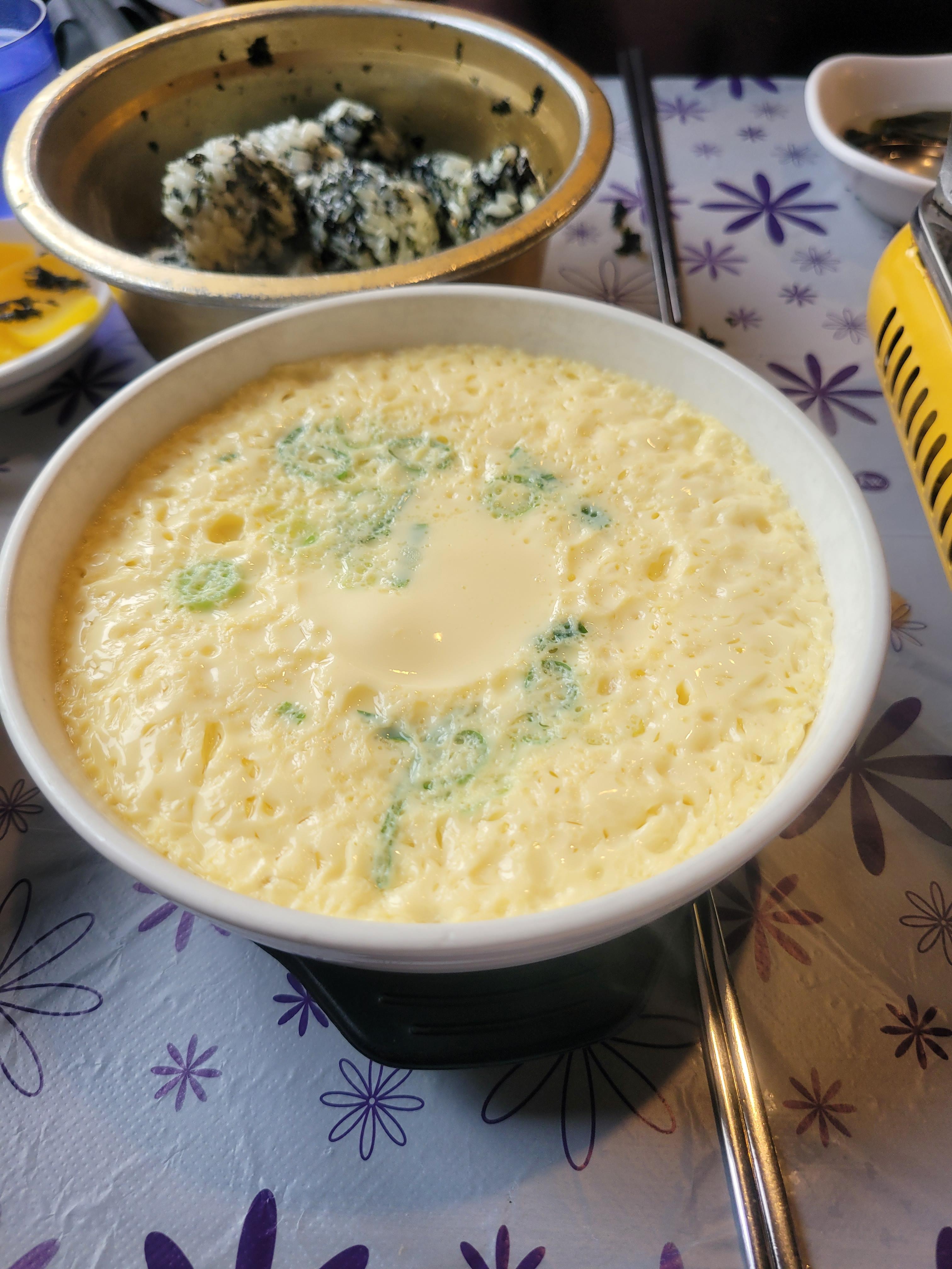 기본찬으로는 따끈한 미역국과 단무지가 나온다. 아무래도 매운 거 파는 집이니 속 달래라고 주는 걸 텐데 이것도 변함없이 여전해서 반갑고... 김가루밥은 말 그대로 김가루와 밥 밖에 없지만 맛있는 쌀밥에 김가루 듬뿍, 참기름 쪼로록이라 그냥 이것만 먹어도 맛있다. 닭발집 계란찜은 진짜 집에 늘 대기시켜 놓고 먹고 싶... 이거 나만 그런 거 아니겠지