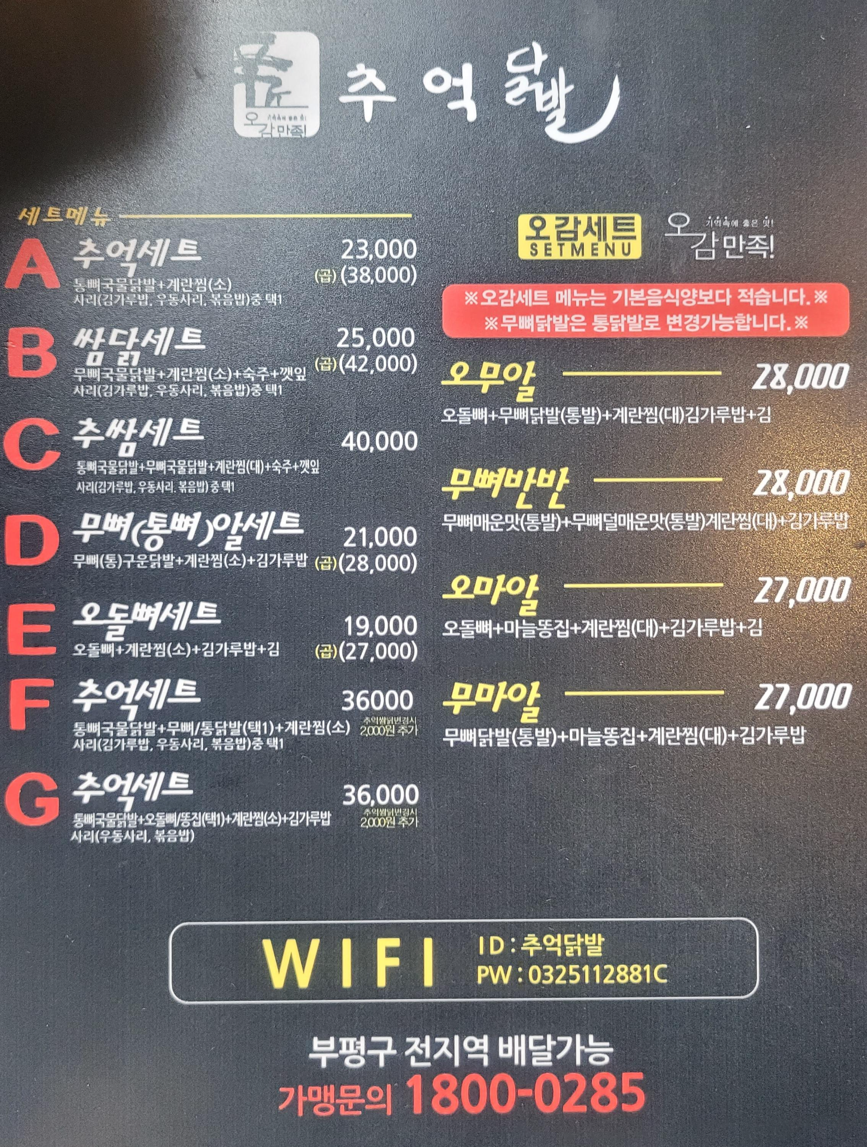 후식 먹을 거면 그냥 적당히 세트만 먹고 카페 가서 케이크 한 조각에 아메리카노를 곁들일 것을 추천한다. 후식 따위 다 필요 없고 그저 닭발집에서 모든 걸 끝내련다(?) 싶다면 사리는 A세트에 기본 제공되는 사리 하나 + 다른 사리 하나를 더 추가하면 아주 넉넉하게 즐길 수 있을 것이다.