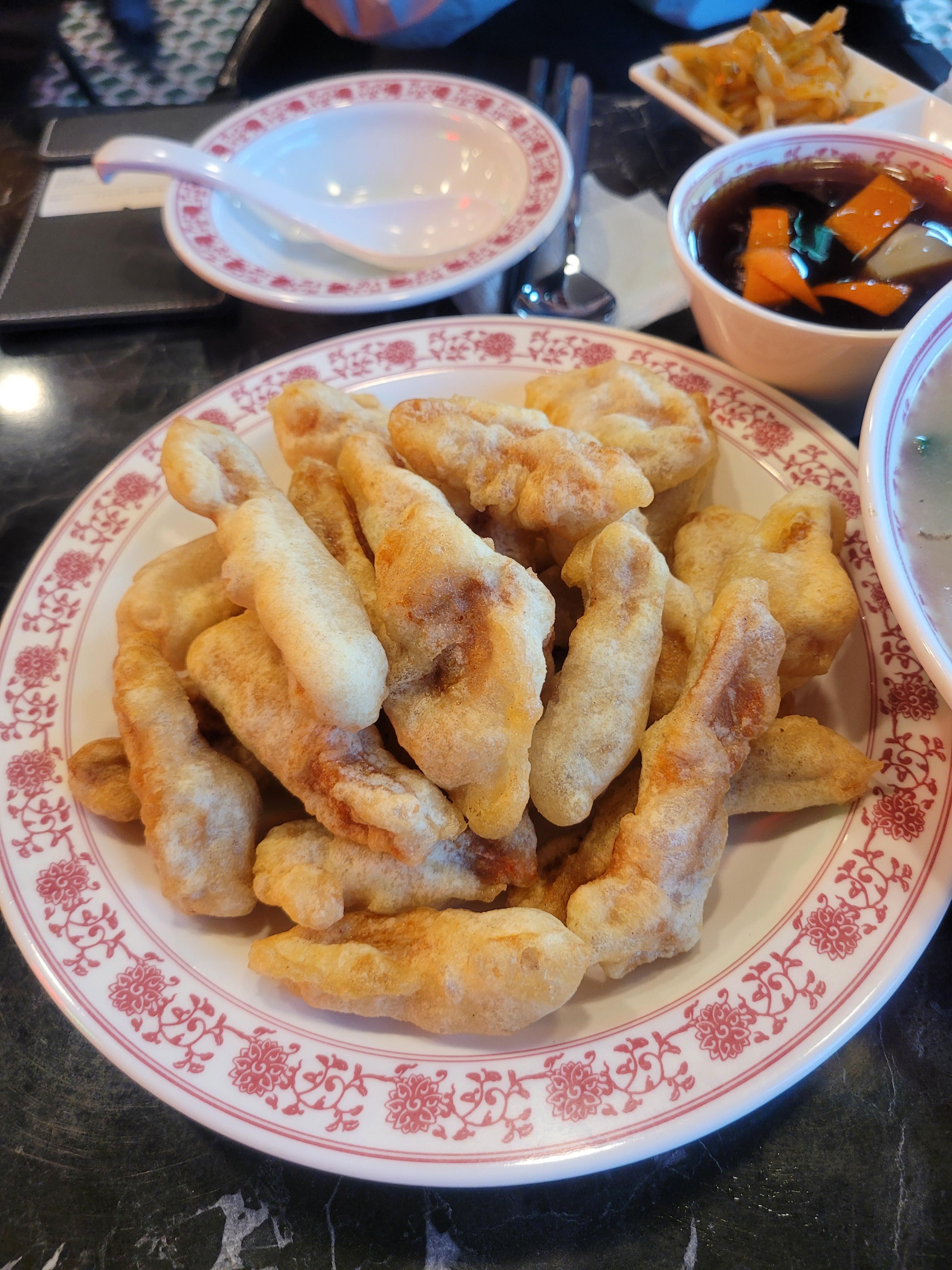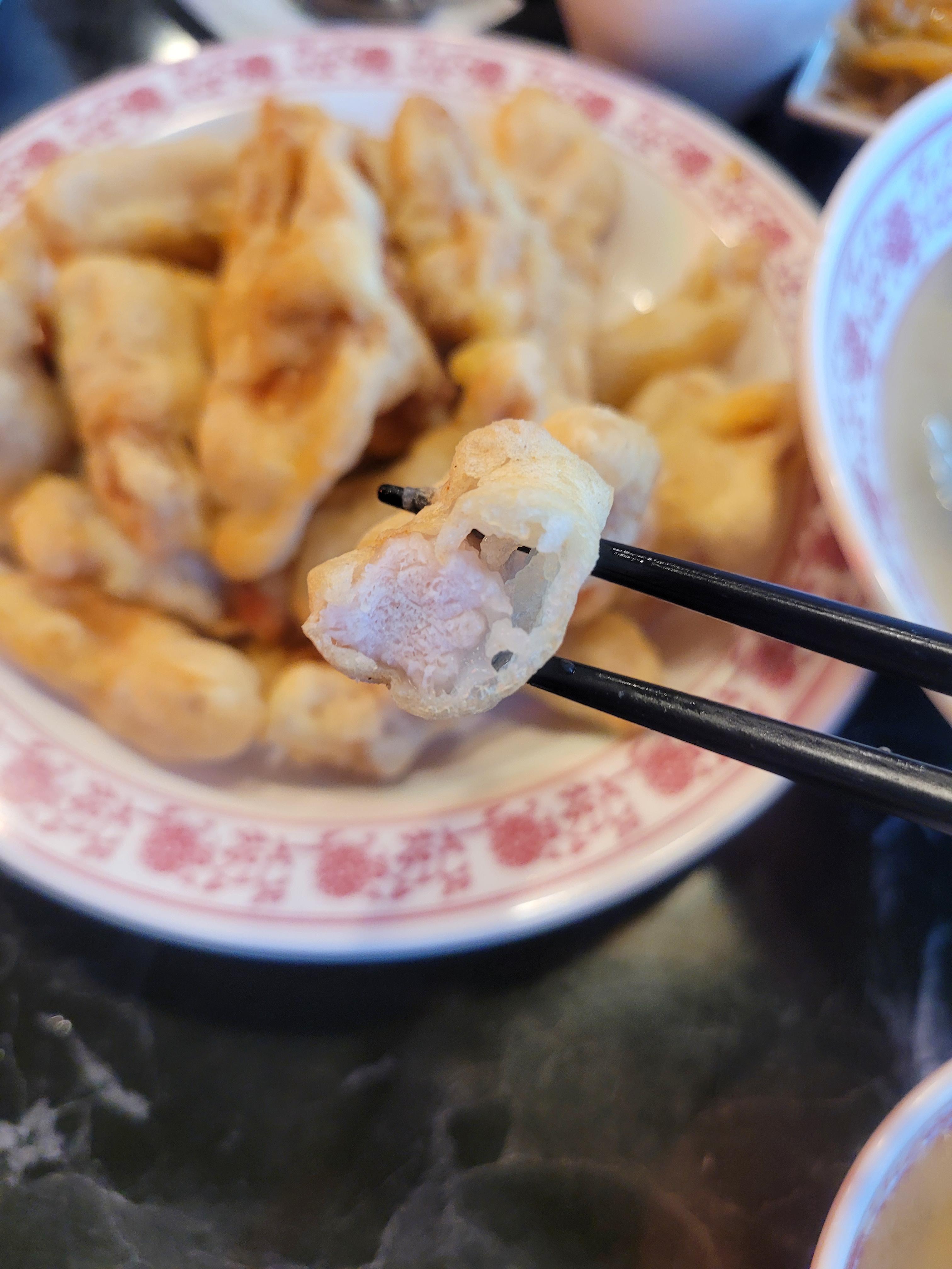 이쁘게도 튀겼네~ 하곤 평범해 보이는 고기 튀김 하나를 입에 넣었을 때 그 기분 좋은 충격이란! 기분 나쁜 바삭함과는 거리가 먼, 그렇다고 눅눅한 것과도 또 다른 느낌의 폭신함이 느껴지는 바삭함의 조화, 이거 뭐냐고 ㅎㅎㅎ나는 보통 부먹 스타일이지만, 이 기분 좋은 식감을 계속 느껴보고 싶어서 소스를 뿌리지 않고 찍어 먹었다.