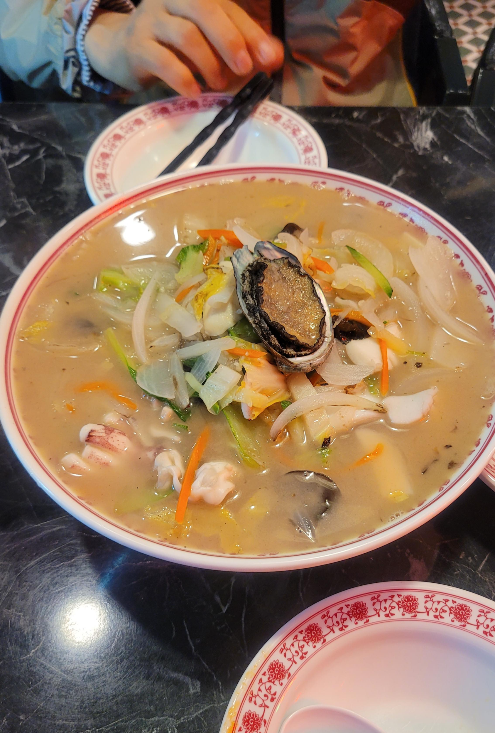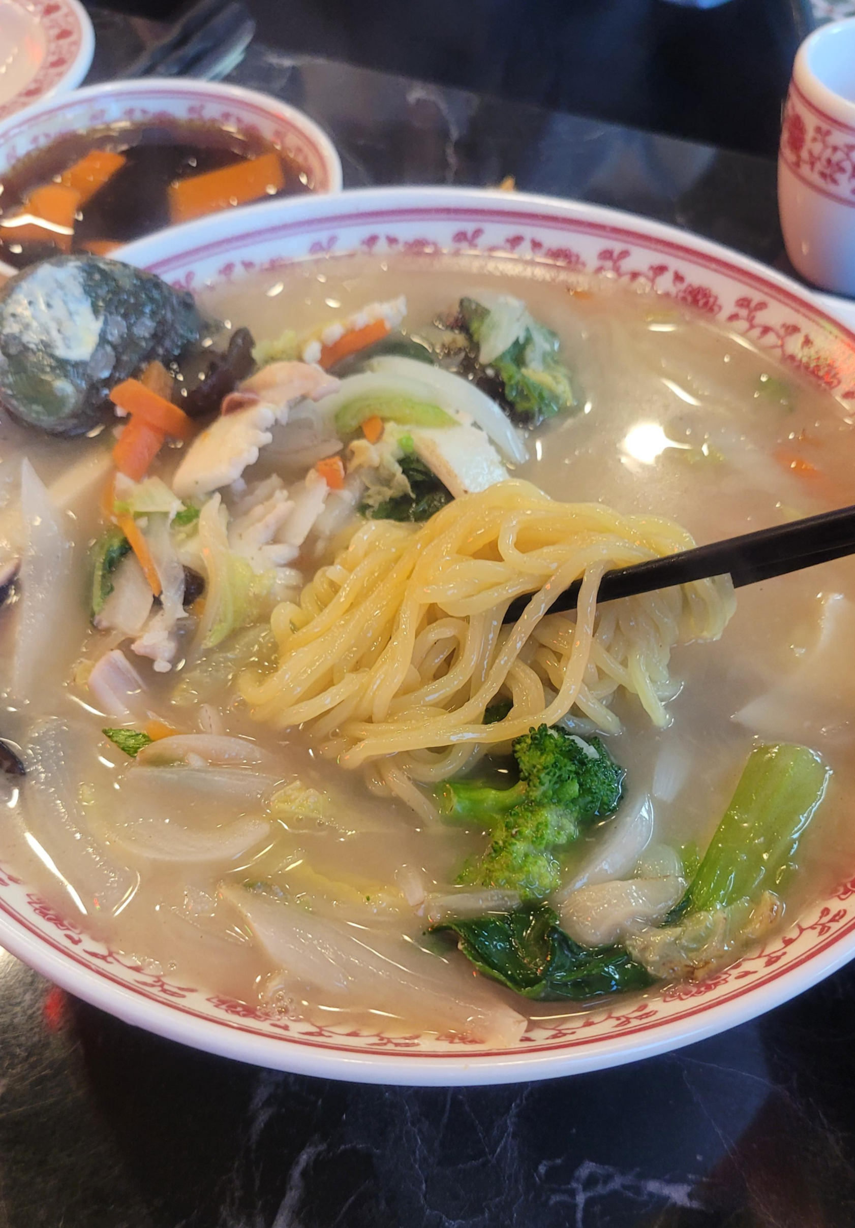 사진에 나와있는 그대로, 구수하면서도 불에 열심히 볶은 향이 물씬 나는 것이 참 좋았던 짬뽕이다. 내 입에는 사알짝쿵 삼삼한 편이었는데, 우리 엄마는 딱 간이 좋다고 하심. 또 하나 좋았던 건 얇은 면인데, 파스타 면마냥 단단한 느낌이 전혀 없이, 비교적 얇고 부드러운 면이었다. 설익음 없이 푹 익어 나와 입에서 부드럽게 호로록 넘어가는 게 아주 좋다. 면에 국물이 가득 베어있는 느낌. 아주 만족.